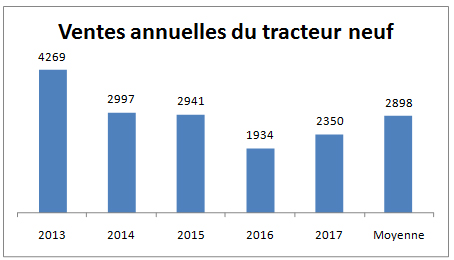 Certes, la campagne agricole 2016/2017 a été favorable, toutefois, son impact sur le marché des tracteurs neufs agricoles n’a enregistré qu’une légère augmentation par rapport à 2016, soit 22%, pour s’établir à 2 350 unités.